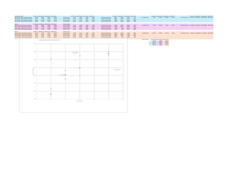 Mass of beaker +5mL solution (in grams) 33.226 33.059 33.062 32.989 Mass of solution 5.196 5.029 5.032 4.959 Density of solution (g/L) 1039.2 1005.8 1006.4 991.8 Average Density 2570.6 2519.25 2510.7 2485.7 Standard deviation 1318.6738 1303.311837 1296.159666 1286.71027
