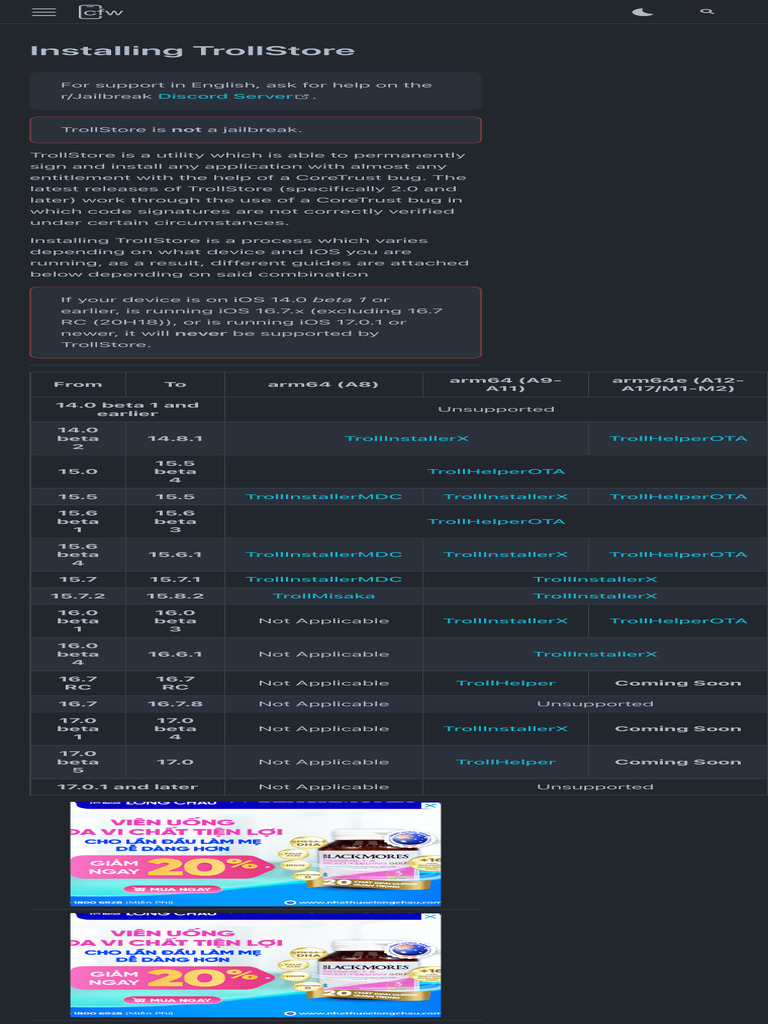 beta beta Not Applicable TrollInstallerX TrollHelperOTA