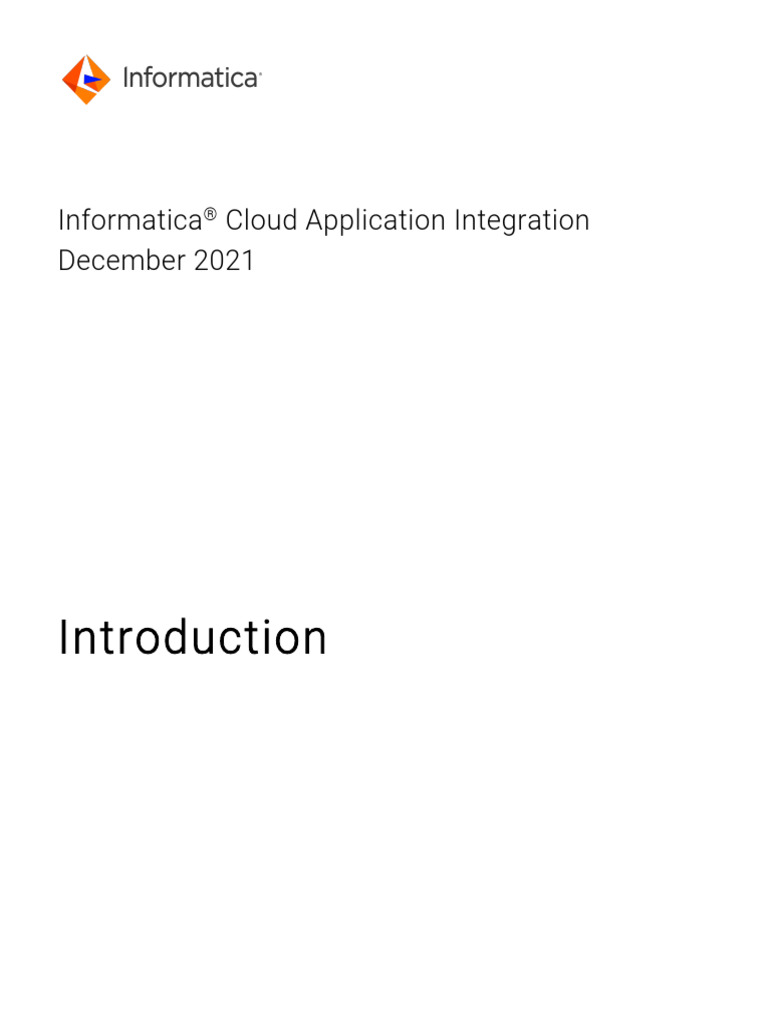 Read Introduction to learn about the Informatica Intelligent Cloud Services℠ Application Integration and