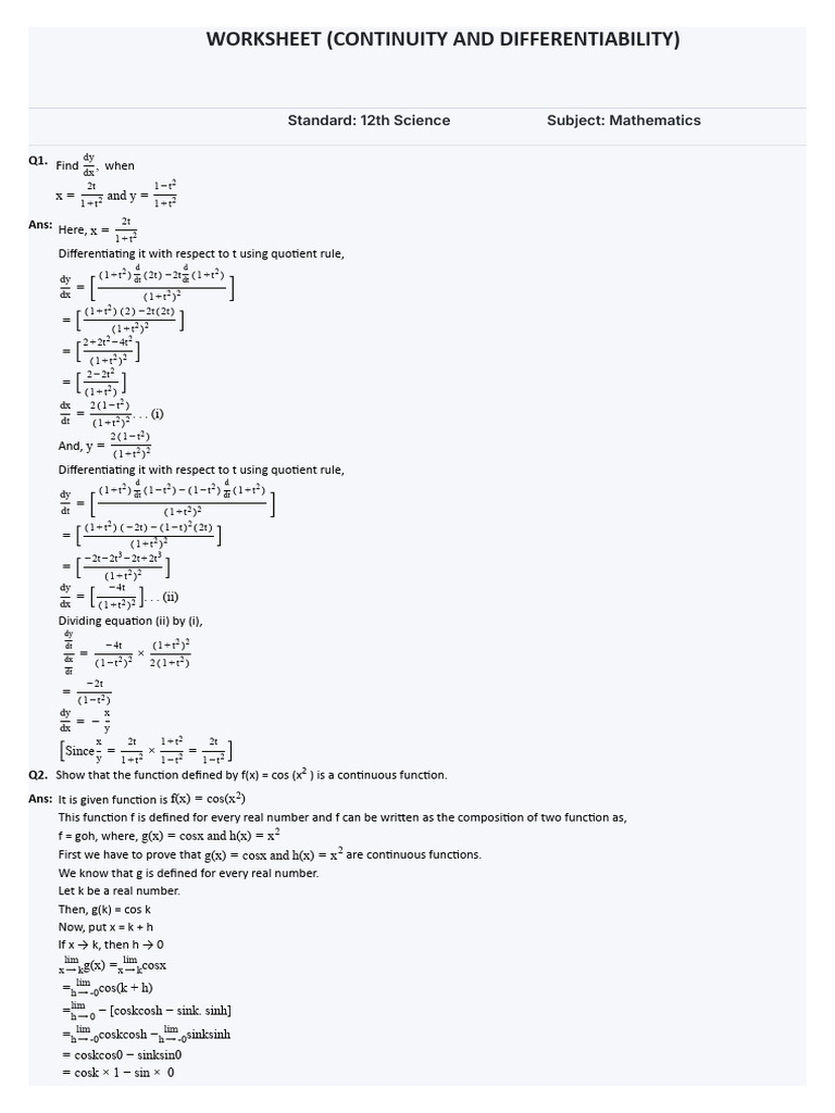 Soln of Cont and Differentiability