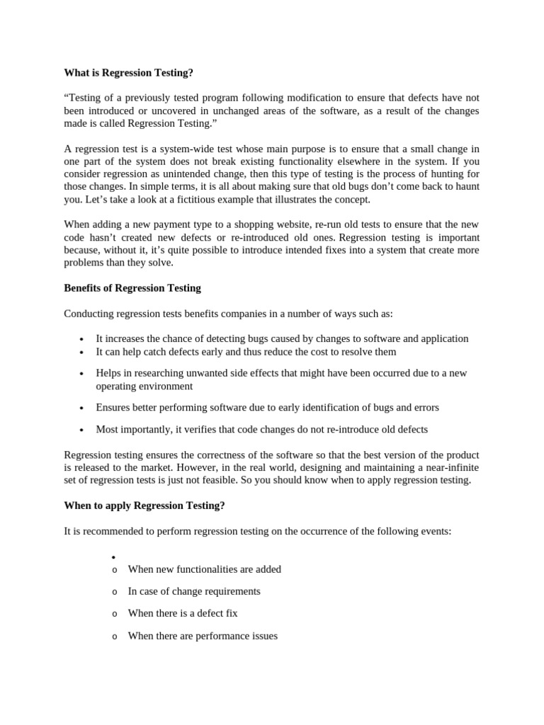 set of regression tests is just not feasible. So you should know when to apply regression testing.