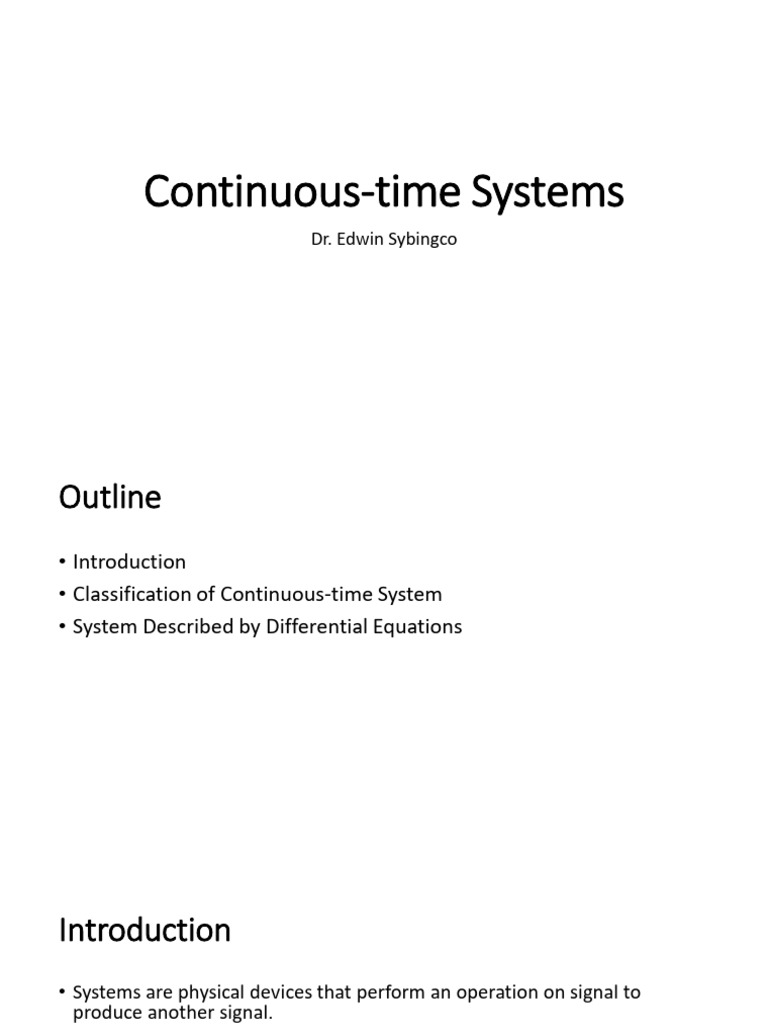 • A system is called noncausal if its output at time 𝜏 depends on the input/output
