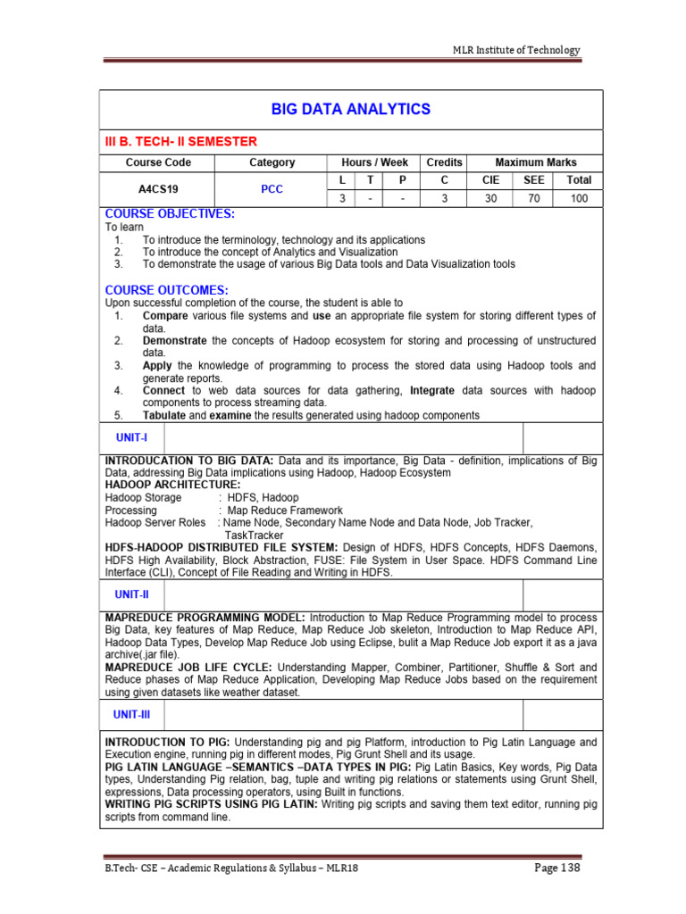 B.Tech- CSE – Academic Regulations & Syllabus – MLR18 Page 138