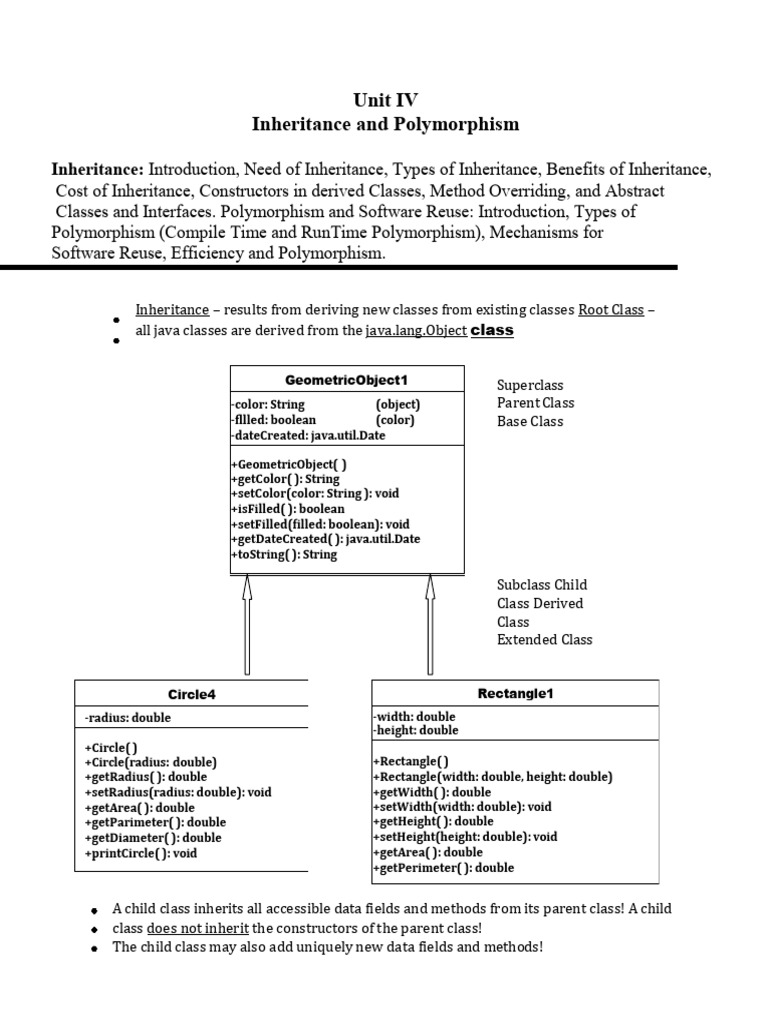Remark: Java does not allow inheritance from multiple classes; a Java class may inherit