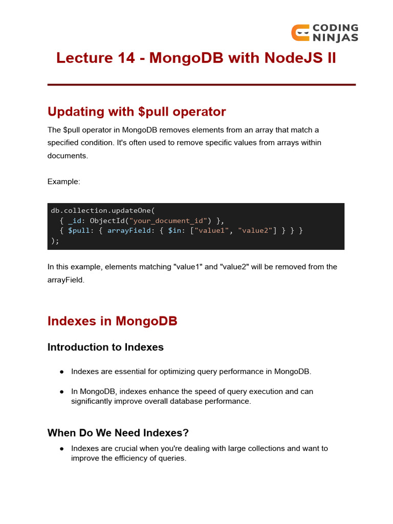 ● Indexes are essential for optimizing query performance in MongoDB.
