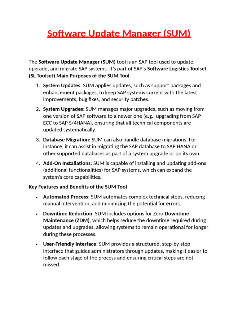 1. System Updates: SUM applies updates, such as support packages and