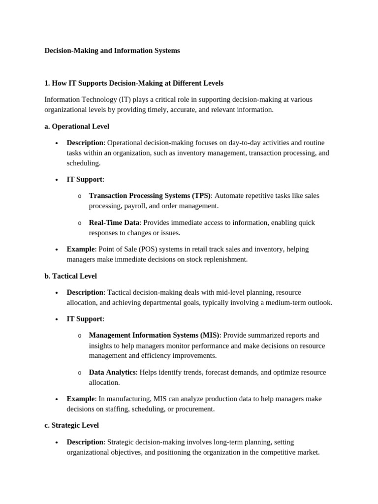 Information Technology (IT) plays a critical role in supporting decision-making at various