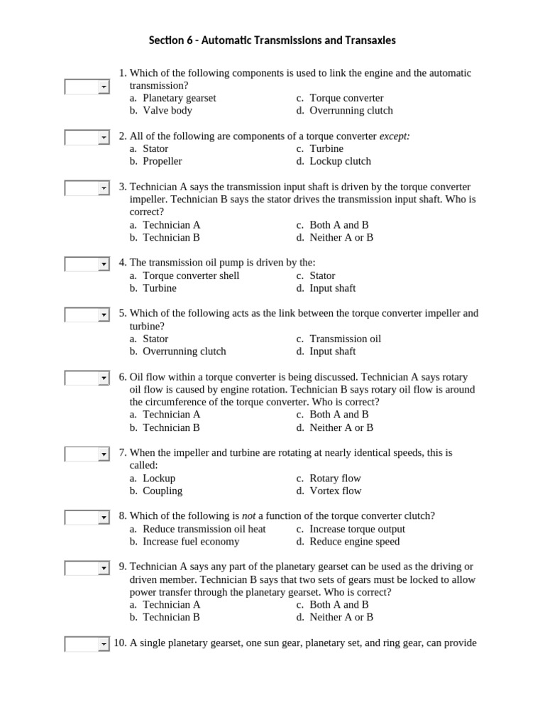 3. Technician A says the transmission input shaft is driven by the torque converter