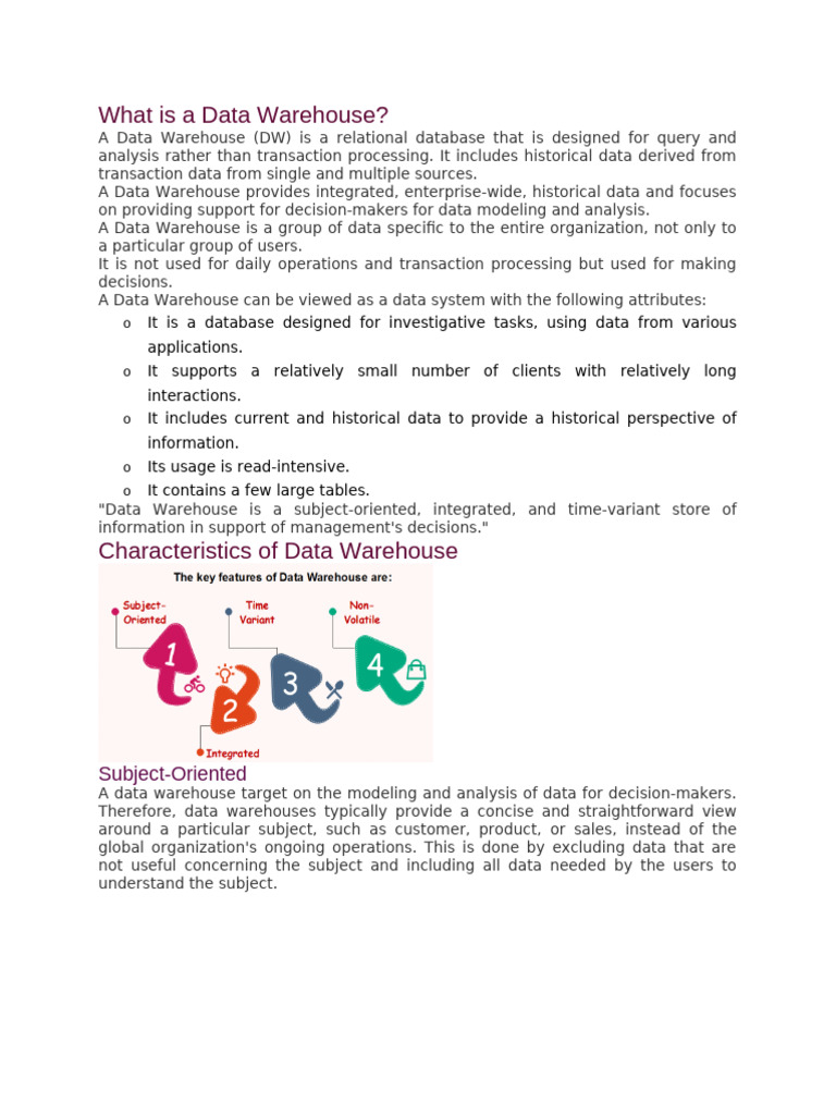 retrieval. Non-Volatile defines that once entered into the warehouse, and data