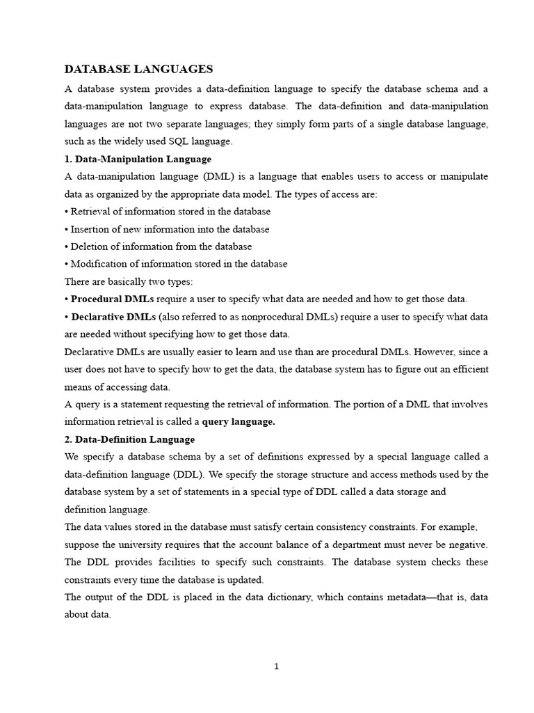• Procedural DMLs require a user to specify what data are needed and how to get those data.