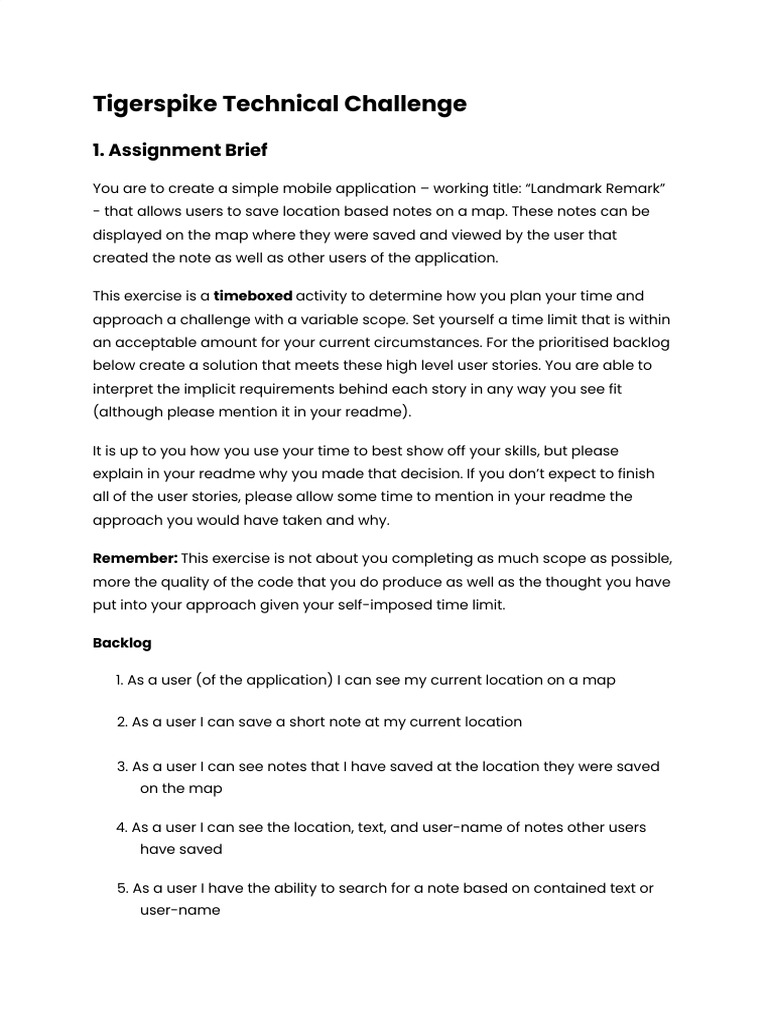 You are to create a simple mobile application – working title: “Landmark Remark”