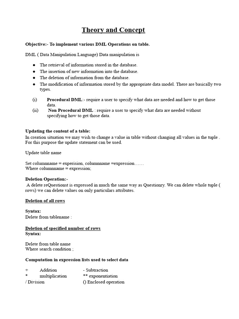 (i) Procedural DML:- require a user to specify what data are needed and how to get those