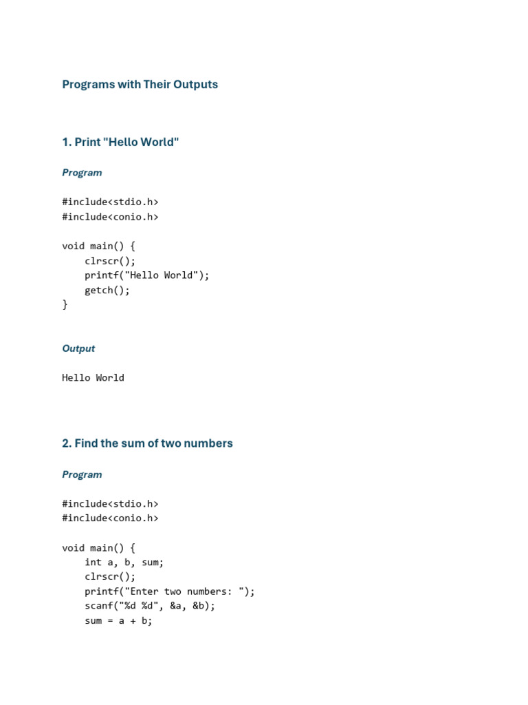3. Count characters, words, and lines in a file: This program reads a file and counts