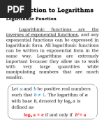 function 𝑦 = 𝑏 , where 𝑏 ≠ 1 and 𝑏 ≠ 0. That is 𝑦 = log 𝑏 𝑥 if
