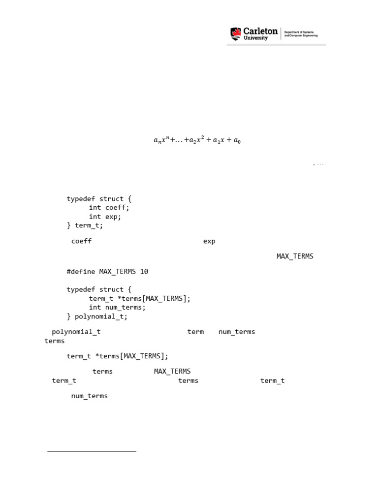 A polynomial_t structure has two members: term and num_terms. Notice the declaration of