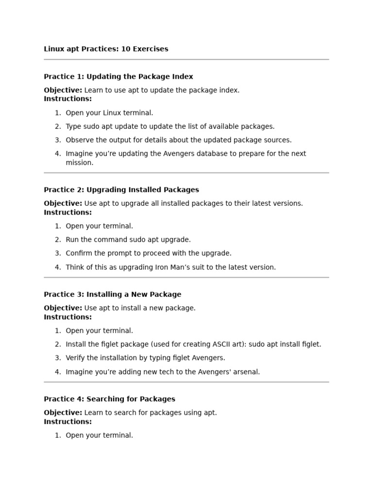Linux apt Practices: 10 Exercises