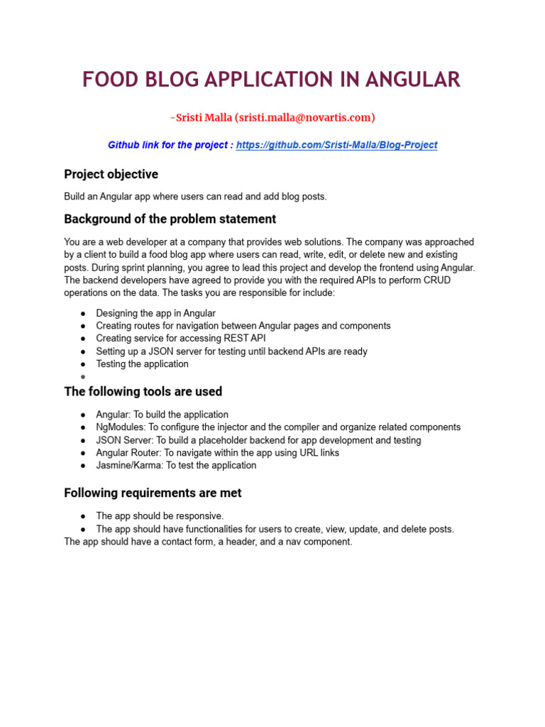 by a client to build a food blog app where users can read, write, edit, or delete new and existing
