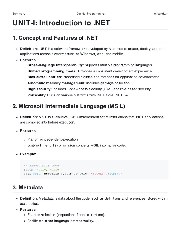 Definition: MSIL is a low-level, CPU-independent set of instructions that .NET applications