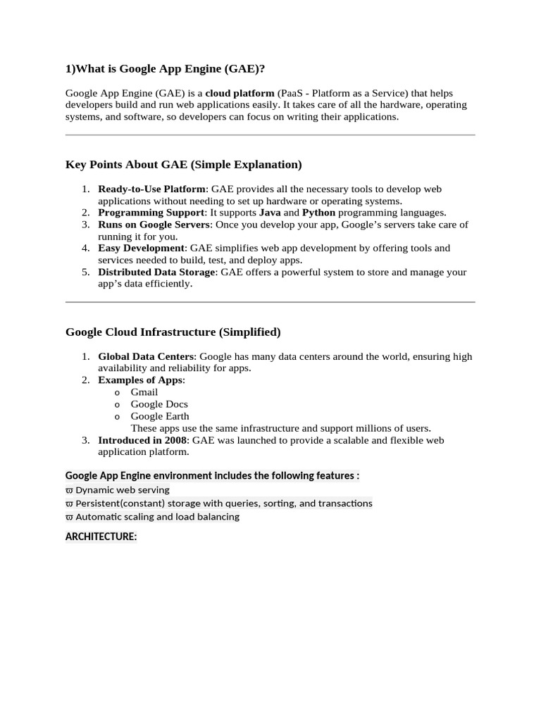 Google App Engine (GAE) is a cloud platform (PaaS - Platform as a Service) that helps