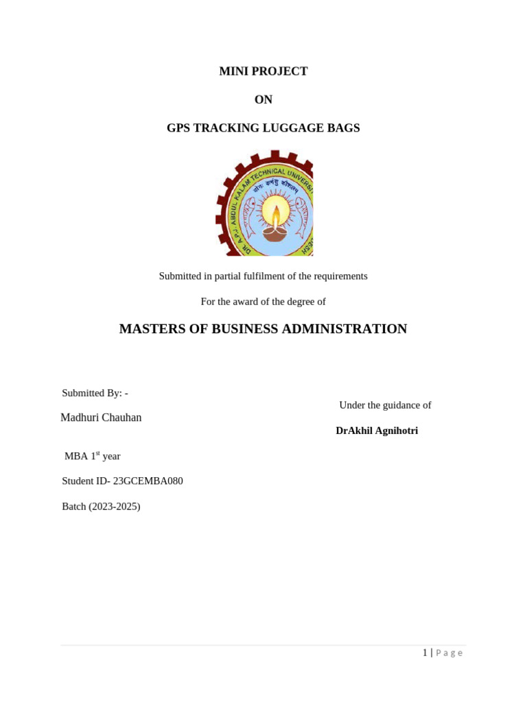 Luggage bag” is submitted in partial fulfilment of the requirement for the award of degree of