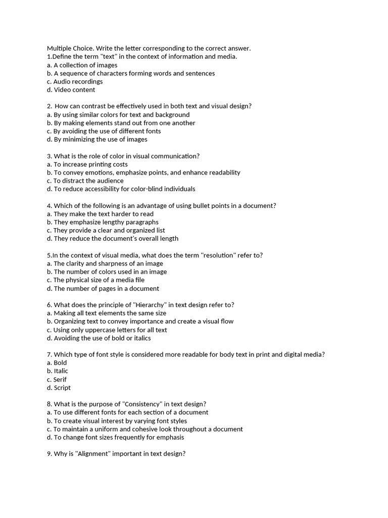 Multiple Choice. Write the letter corresponding to the correct answer.