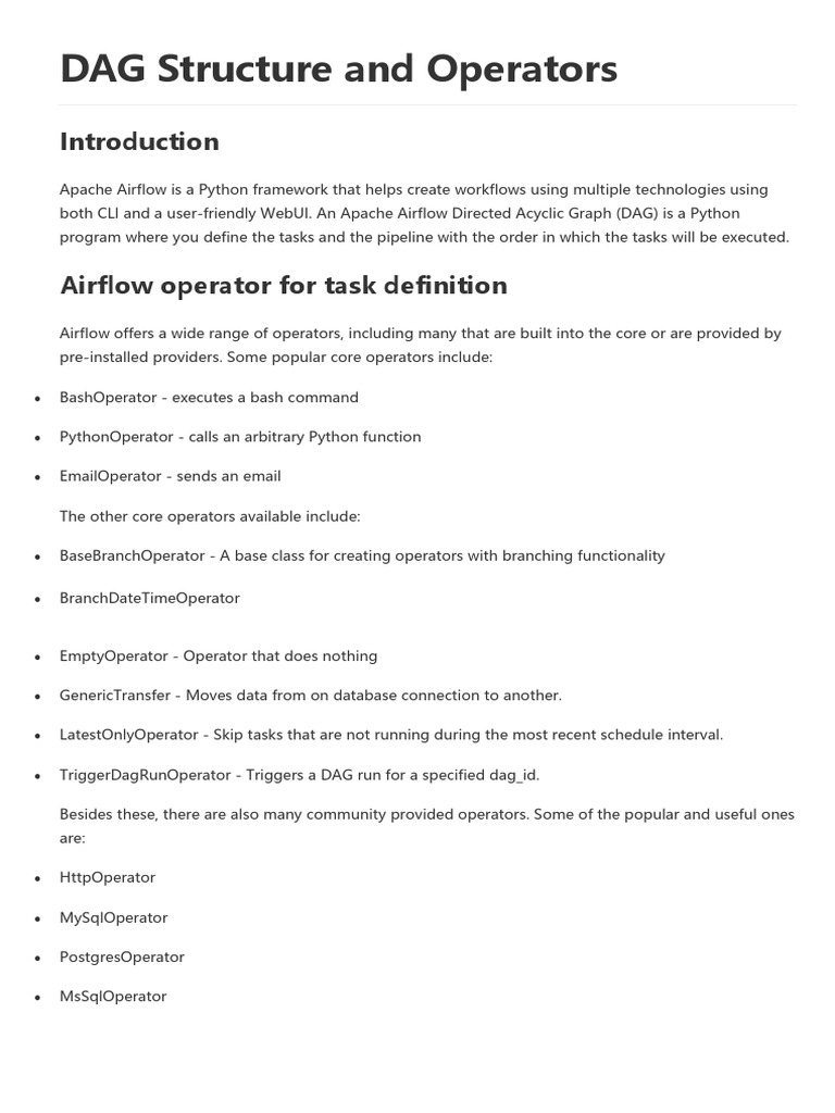 Airflow offers a wide range of operators, including many that are built into the core or are provided by