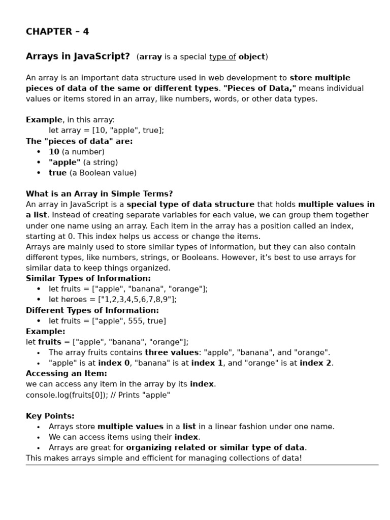 different types, like numbers, strings, or Booleans. However, it’s best to use arrays for