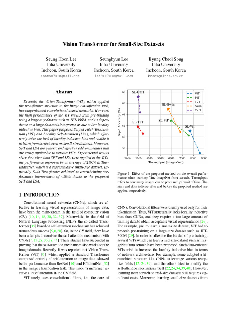 need to study ViT that can learn small-size datasets by suf- proves the performance of various ViTs both qualitatively