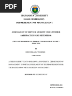quality of the service rendered by Commercial Bank of Ethiopia (CBE). Eight service quality