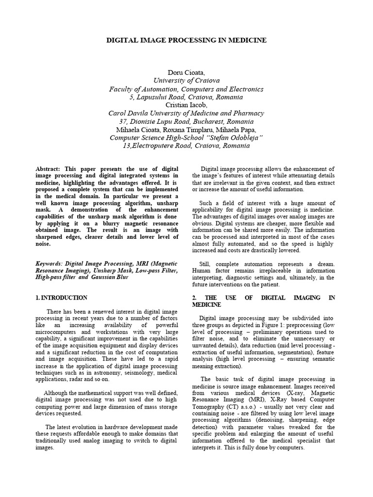 DIGITAL IMAGE PROCESSING IN MEDICINE