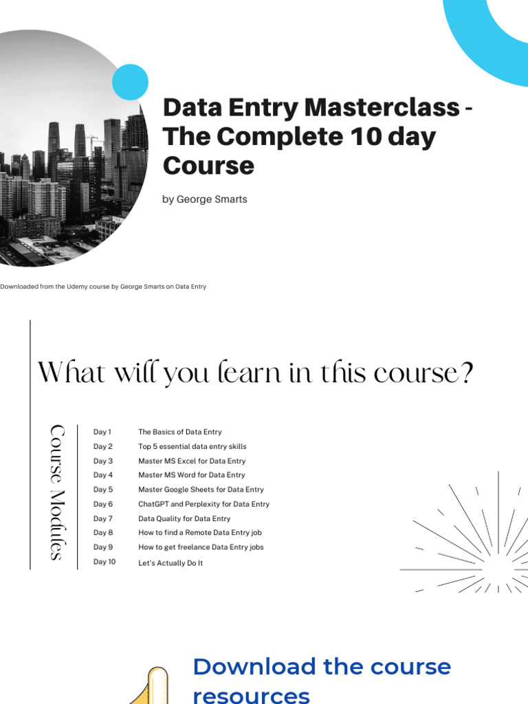 Downloaded from the Udemy course by George Smarts on Data Entry