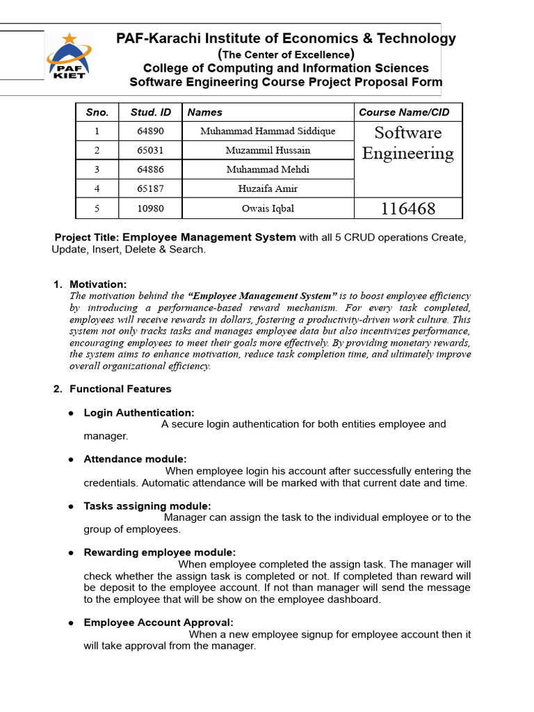 Software Engineering Course Project Proposal Form