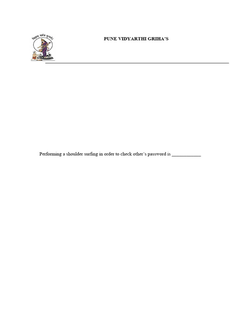 2. Performing a shoulder surfing in order to check other’s password is ____________