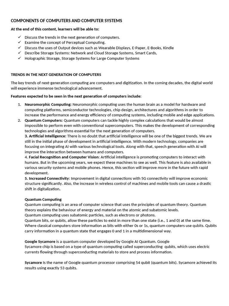 COMPONENTS OF COMPUTERS AND COMPUTER SYSTEMS