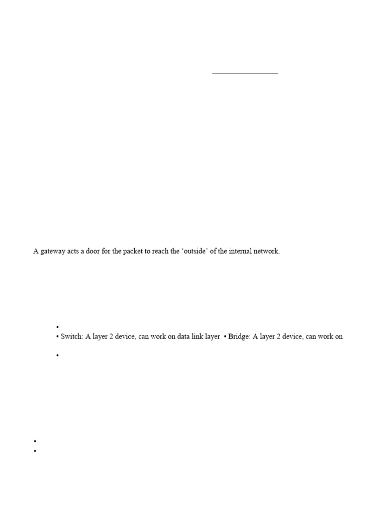 • Switch: A layer 2 device, can work on data link layer • Bridge: A layer 2 device, can work on