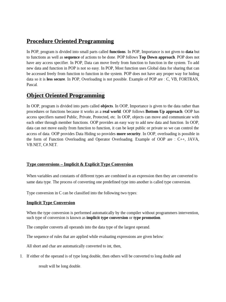 data so it is less secure. In POP, Overloading is not possible. Example of POP are : C, VB, FORTRAN,