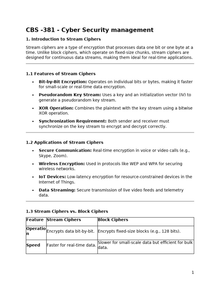 time. Unlike block ciphers, which operate on fixed-size chunks, stream ciphers are