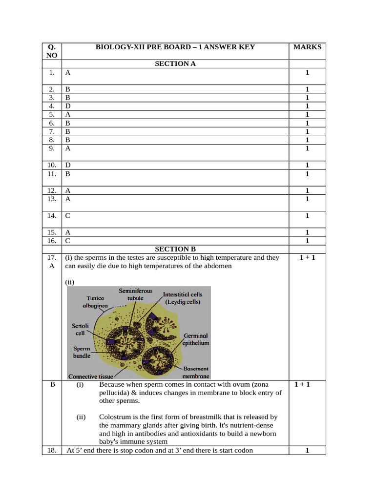 BIOLOGY-XII PRE BOARD – 1 ANSWER KEY MARKS
