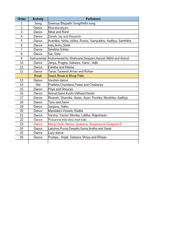 Swetha Final act of the day will be a dance performance from a group of young kids
