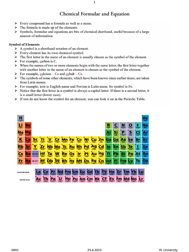 Chemical Formulae and Equation | PDF