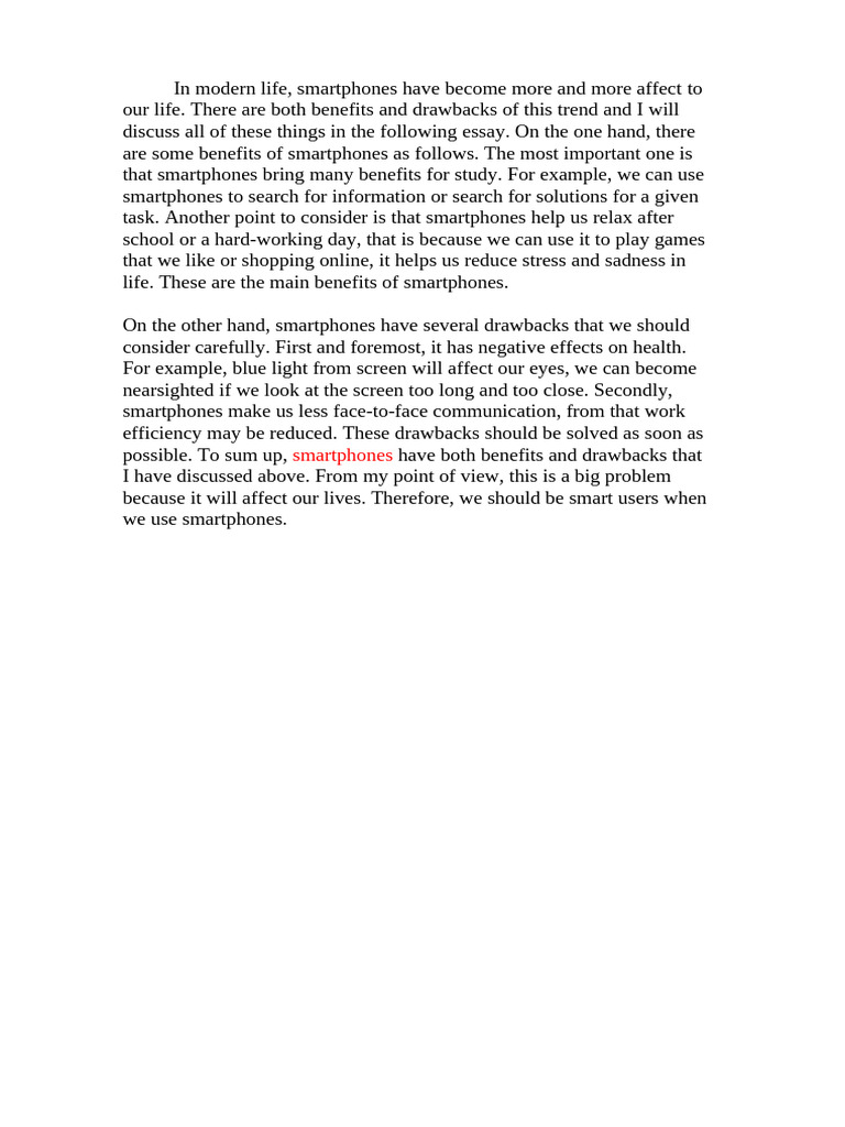 possible. To sum up, smartphones have both benefits and drawbacks that
