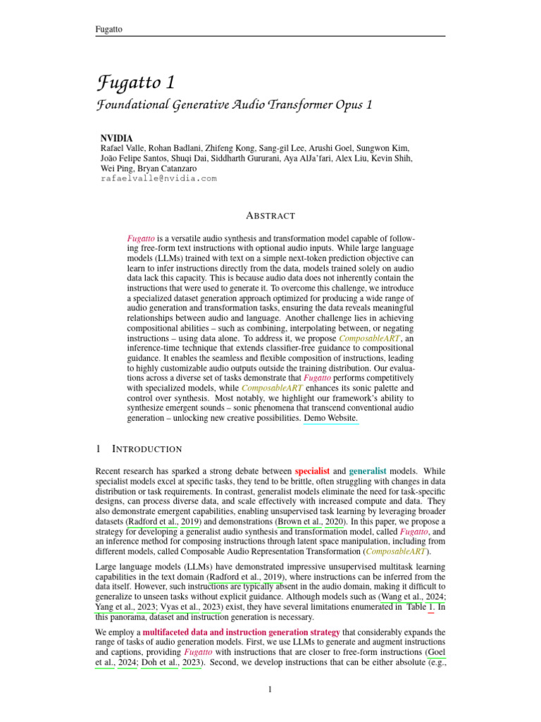 Fugatto as a new benchmark for foundation models for audio synthesis and transformation. Similarly,