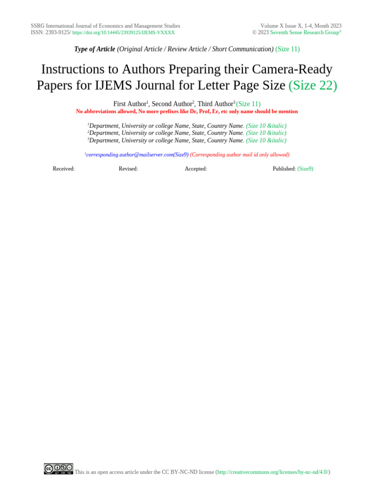 SSRG International Journal of Economics and Management Studies Volume X Issue X, 1-4, Month 2023
