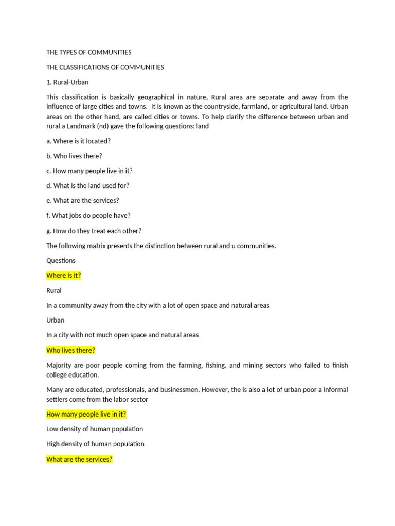 This classification is basically geographical in nature, Rural area are separate and away from the