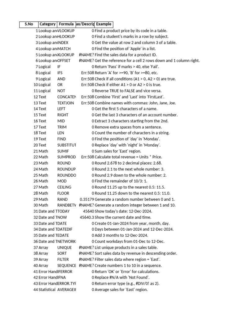 13 Text TEXTJOIN Err:508 Combine names with commas: John, Jane, Joe.