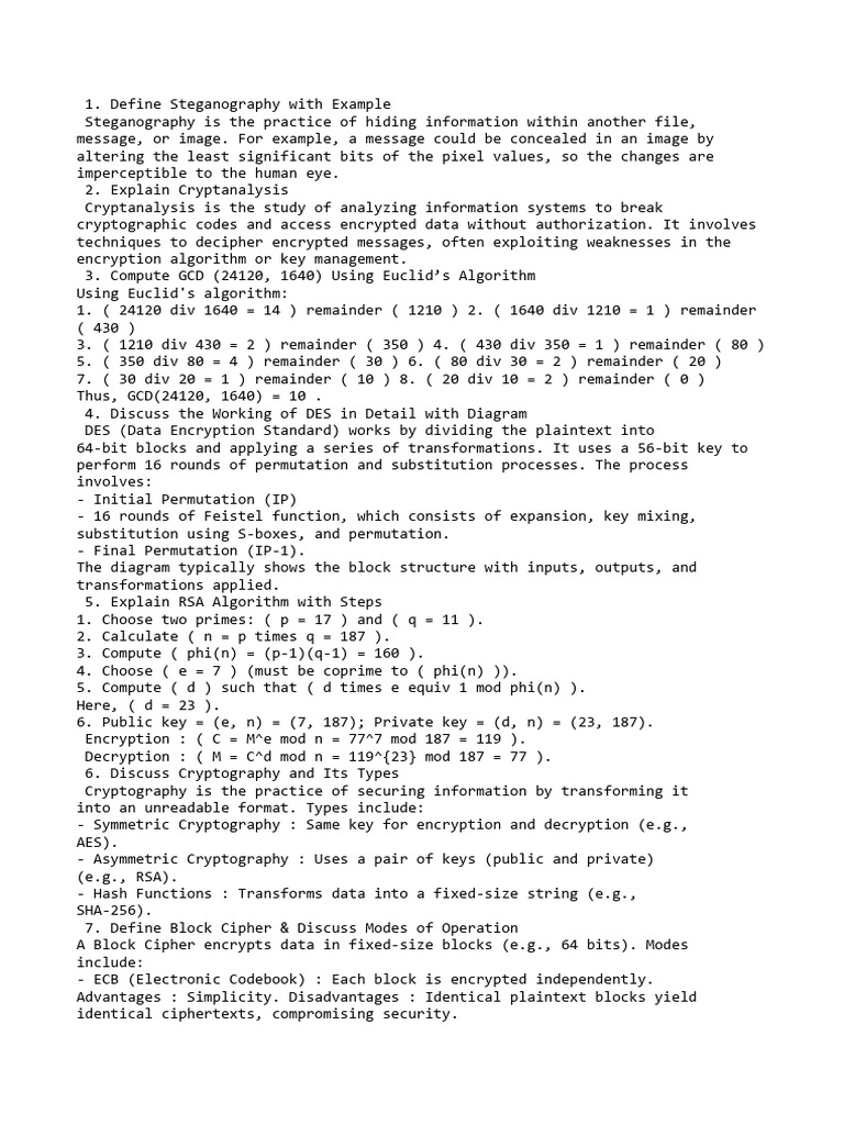 3. Compute GCD (24120, 1640) Using Euclid’s Algorithm
