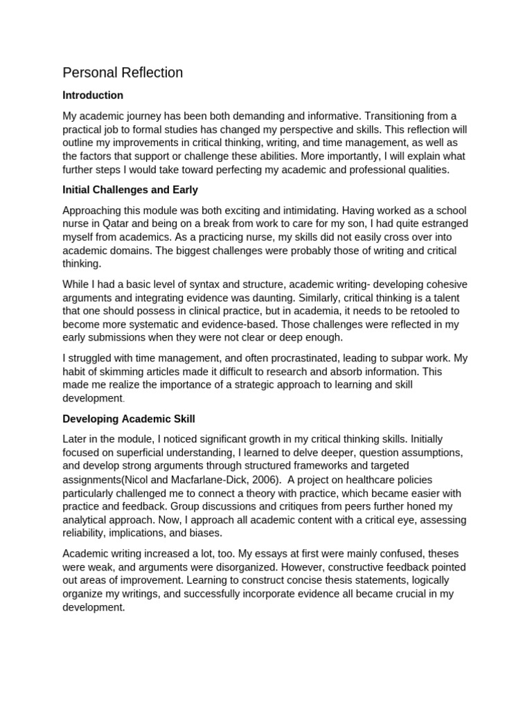 This reflective case is a catalyst for my academic journey. Critical thinking, academic