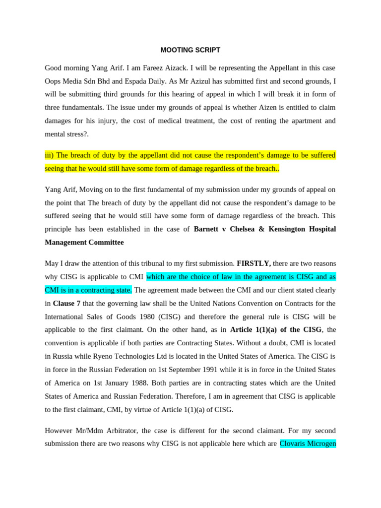 To conclude, Mr/Mdm Arbitrator, CISG is applicable to the first claimant, CMI as according to