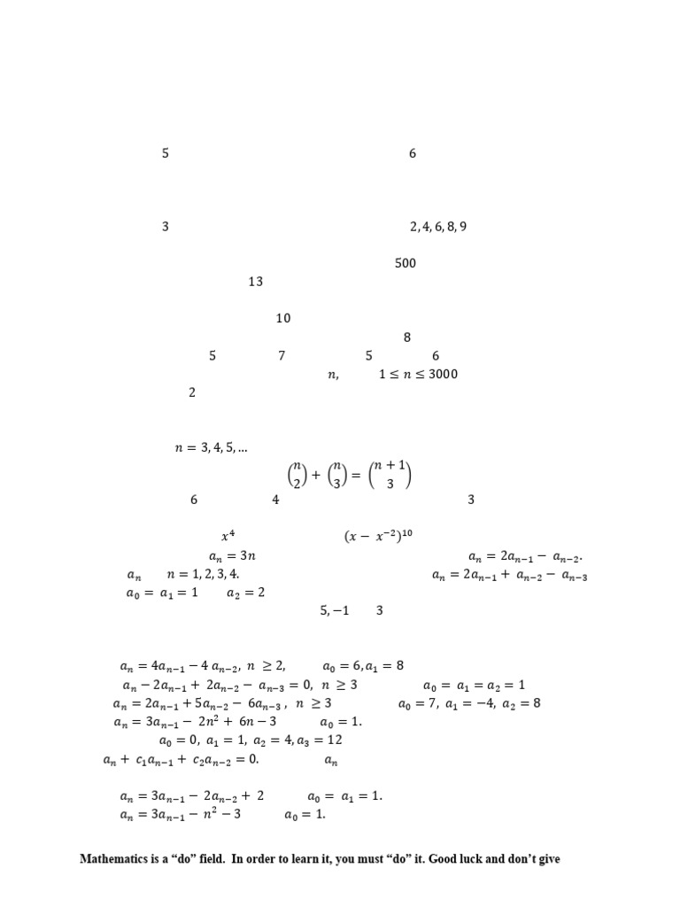 Mathematics is a “do” field. In order to learn it, you must “do” it. Good luck and don’t give up!