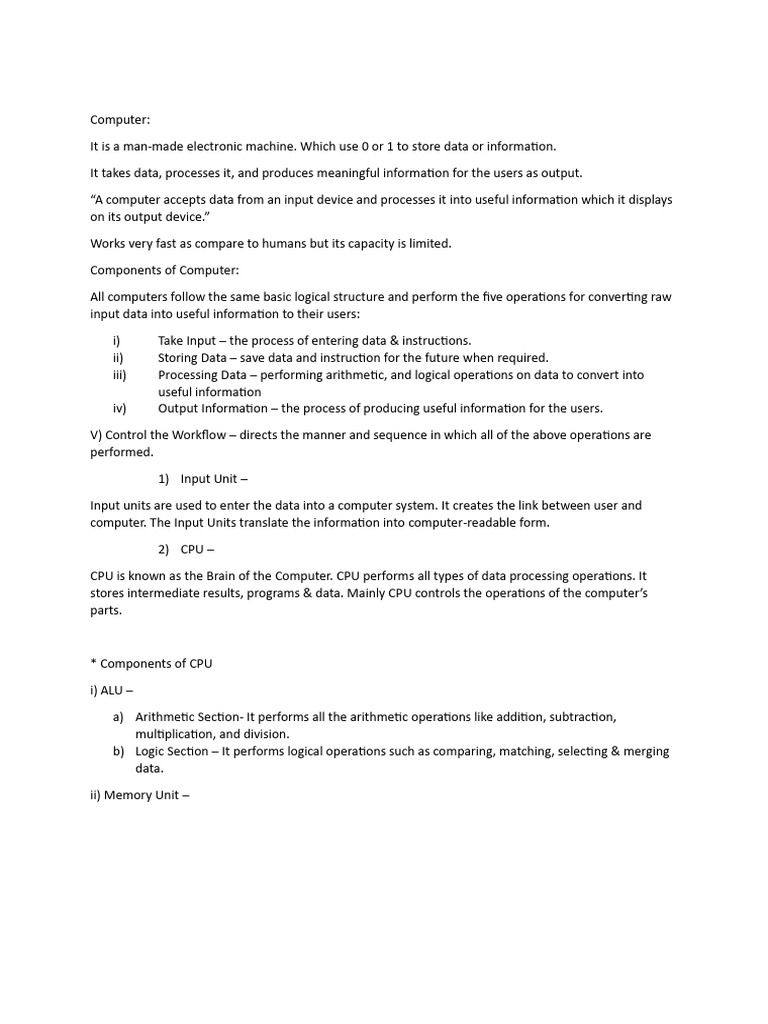 stores intermediate results, programs & data. Mainly CPU controls the operations of the computer’s